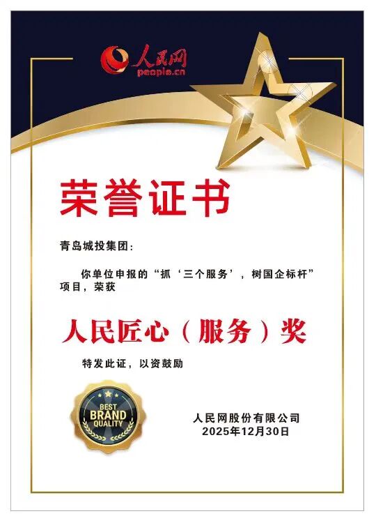 “抓‘三个效劳’,,,,,树国企标杆”项目荣获人民网2025人民匠心(效劳)奖。。。。。。。
