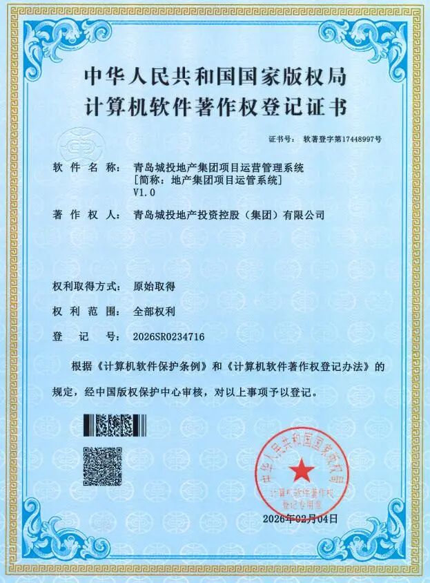¿ËÈÕ£¬£¬£¬£¬£¬£¬£¬£¬ÇൺPAÆì½¢Ìü(ÖйúÇø)¼¯ÍÅÆìϵزú¼¯ÍÅ×ÔÖ÷Ñз¢µÄ·¿µØ²úÏîÄ¿ÔËÓªÖÎÀíϵͳ V1.0˳Ëìͨ¹ý¹ú¼Ò°æÈ¨¾ÖÉóºË£¬£¬£¬£¬£¬£¬£¬£¬ÕýʽȡµÃÅÌËã»úÈí¼þÖø×÷Ȩ¹ÒºÅÖ¤Êé¡£¡£¡£¡£¡£×÷Ϊ¼¯ÍÅÔڵزú¿ª·¢ÁìÓòÊ׸öÔËÓªÖÎÀíÀàÈí¼þÖø×÷Ȩ£¬£¬£¬£¬£¬£¬£¬£¬´Ë´ÎÈÏÖ¤±ê¼Ç×ÅÆóÒµÊý×Ö»¯×ªÐÍʵÏÖʵÖÊÐÔÍ»ÆÆ£¬£¬£¬£¬£¬£¬£¬£¬×ÔÖ÷Ñз¢ÓëÁ¢ÒìÄÜÁ¦»ñµÃ¹ú¼ÒȨÍþÈϿɡ£¡£¡£¡£¡£